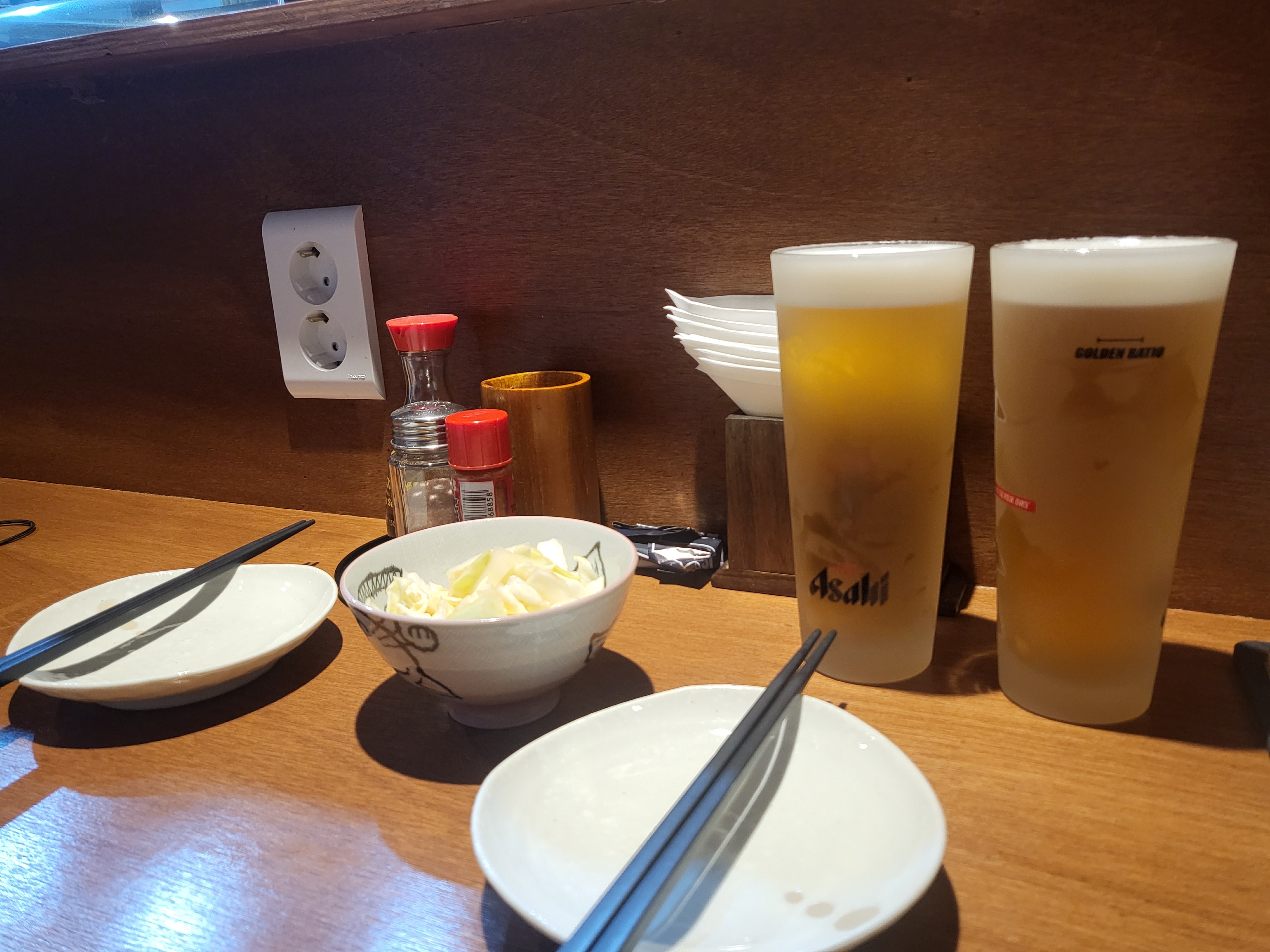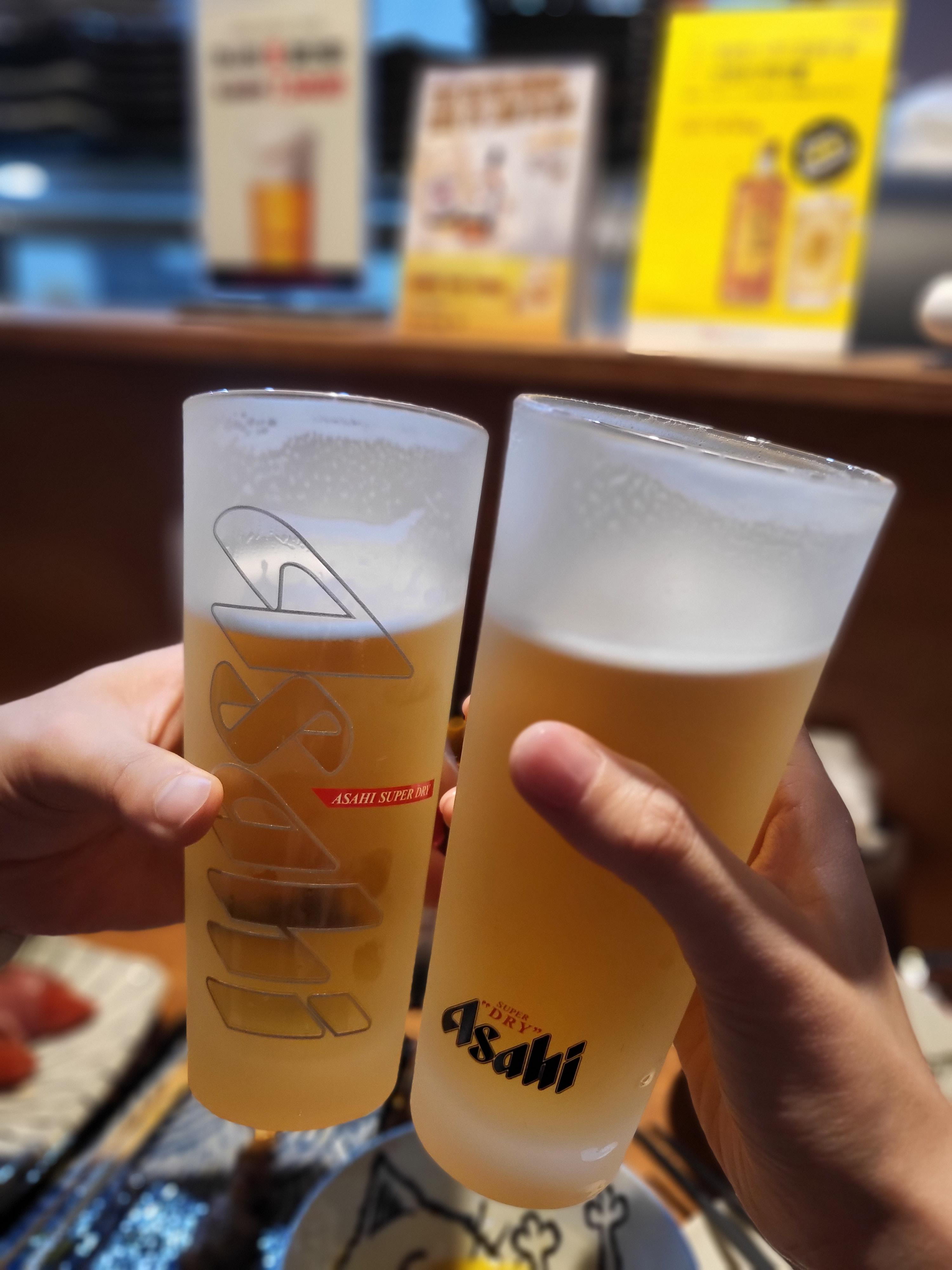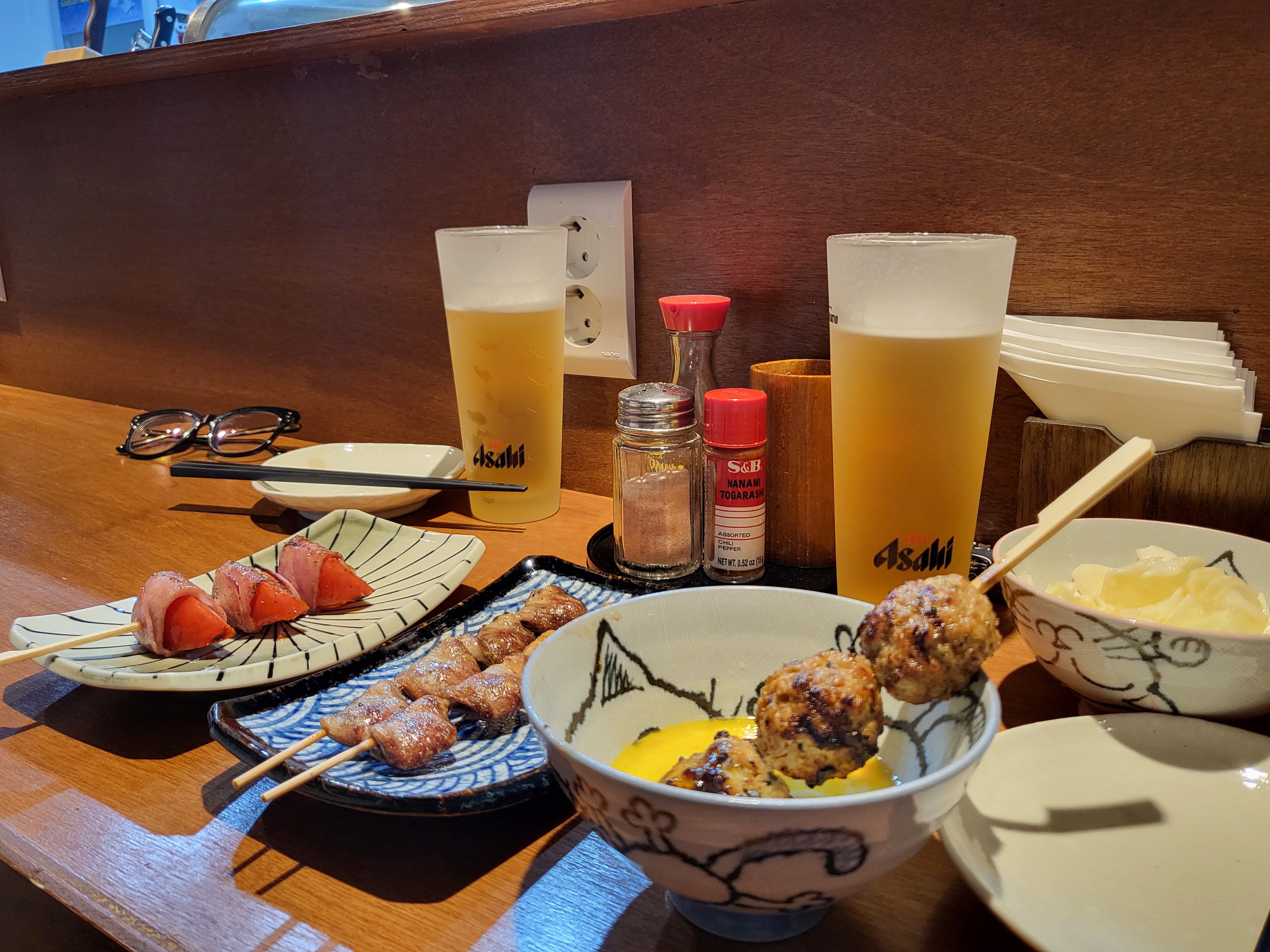 아사히 슈퍼드라이 맥주! 너무 시원하고 맛있더라구요. 기본셋팅 해주신뒤 센스있게 맥주부터 가져다주셨습니다. 그리고 익힌 꼬치구이부터 하나씩 순차적으로 가져다주셨구요. 메뉴 하나하나 가져다주시면서 친절히 어떤 부위다 설명주셨는데 여종업원분이 너무 친절하시더라구요 :)