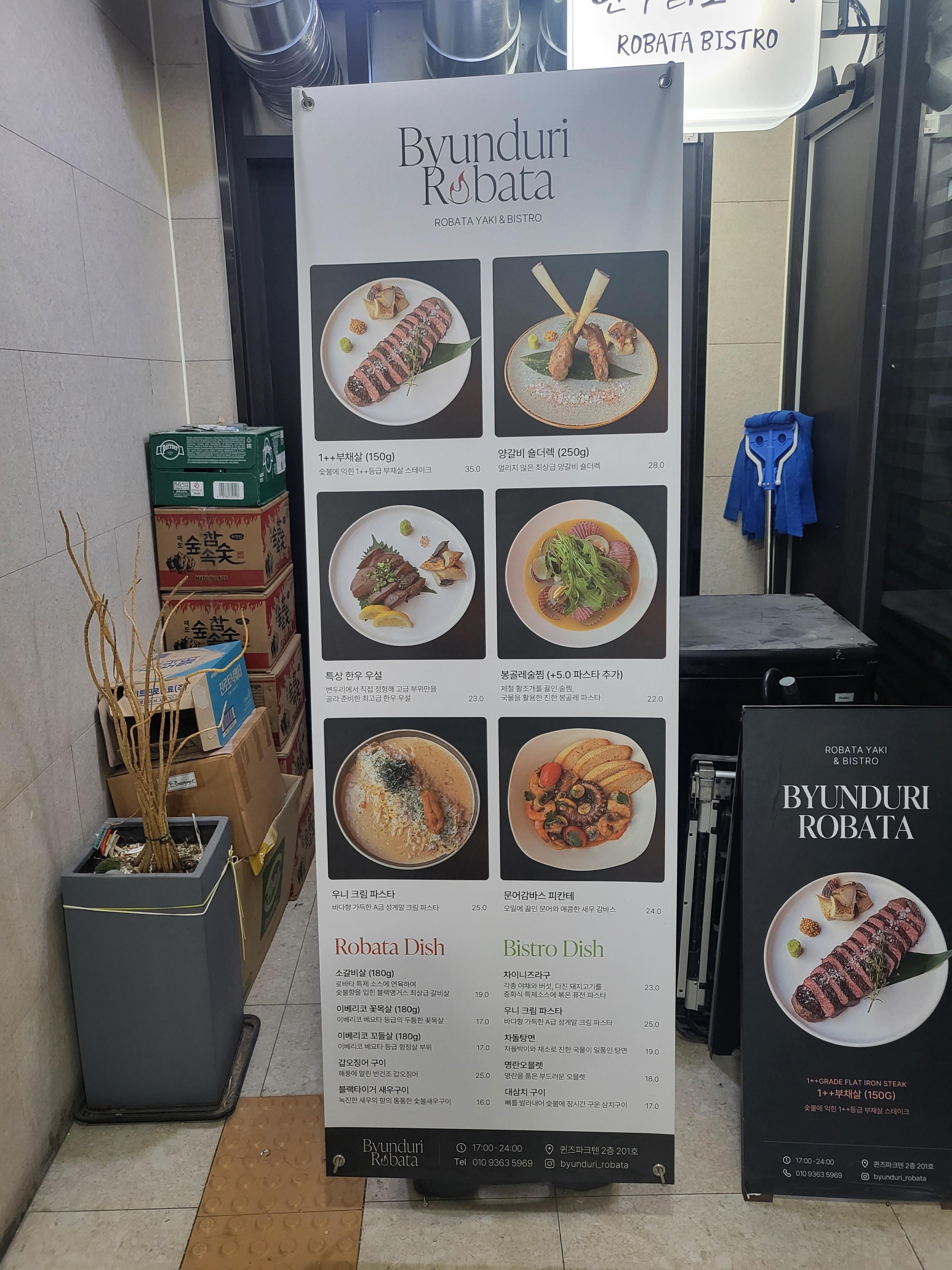마곡역에서 분위기 있는 음식점을 찾는다면 여기! 변두리로바타 한번 가보시길 바랍니다. 여기는 꽤나 숙련된것 같은 쉐프가 고기와 양식을 조리해주고 동시에 와인이랑 사케를 파는곳인데 분위기가 나쁘지 않습니다. 저도 얼마전 여자친구랑 한번 다녀왔는데 음식맛도 괜찮고 와인도 좋더라구요.