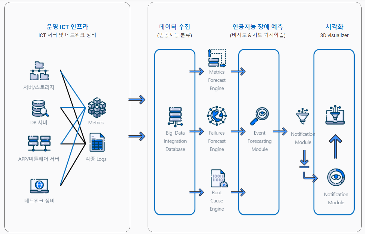 페타온포캐스터는 인공지능 IT운영 자동화시스템으로 서비스장애 및 지연이 발생할경우 실시간으로 기업 인프라 환경 내 문제점을 파악하고 분석합니다. 사람의 경우 자체적으로 인지능력을 보유해 본인 건강상태를 파악하고 병원에 방문해 치료를 받을수 있지만 IT 시스템은 스스로 건강상태를 인지할수 없죠. 그래서 ICT 시스템을 운영하는 사업체는 대부분 서비스 장애에 직/간접적으로 노출되어 있는데요. 페타온포캐스터가 이런 문제점을 조기에 파악할수 있도록 돕는 시스템입니다.