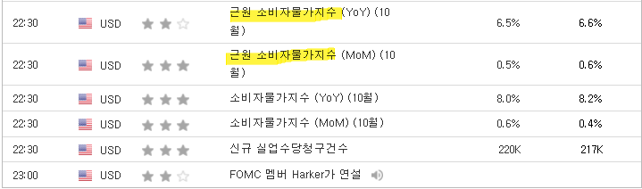 잠시 2시간후 2022년 10월 미국 소비자물가지수가 발표될 예정입니다.