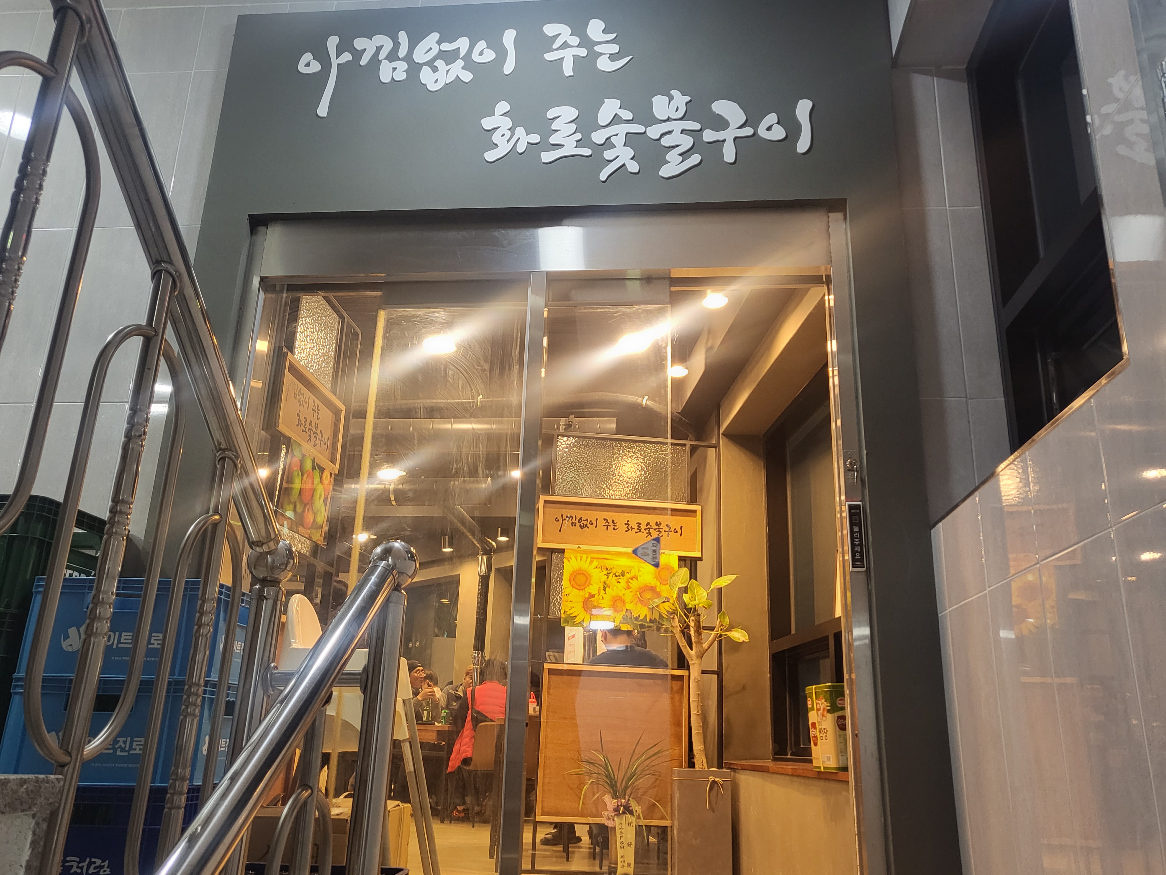 위 사진처럼 되있는곳으로 들어가셔서 2층 올라가시면 아낌없이 주는 화로숯불구이 가게가 나온답니다. 아 위치랑 영업시간은 아래에 남겨두었으니 꼭 참고하셔서 방문하세요! 왜냐하면 여기가 생각보다 영업시간은 짧게 하더라구요. 아무래도 운서역 넙디에 위치해 있는데 이곳이 다들 직장다니다가 잠자로 오는곳이라 너무 늦게까지는 안하는것 같아요.