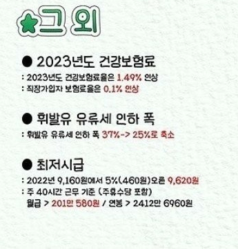 한편, 건강보험료율은 2023년부터 1.49% 인상됩니다. 직장가입자는 0.1% 인상되구요.