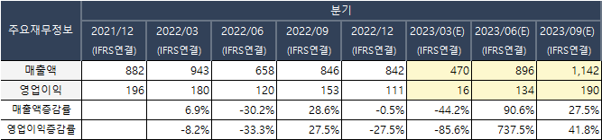 그런데 2023년 1분기에 QoQ 기준 매출액과 영업이익이 -44%, -85% 급감했다. 이는 천보가 이차전지 사업을 영위한뒤로 본적없는 어닝쇼크인것.